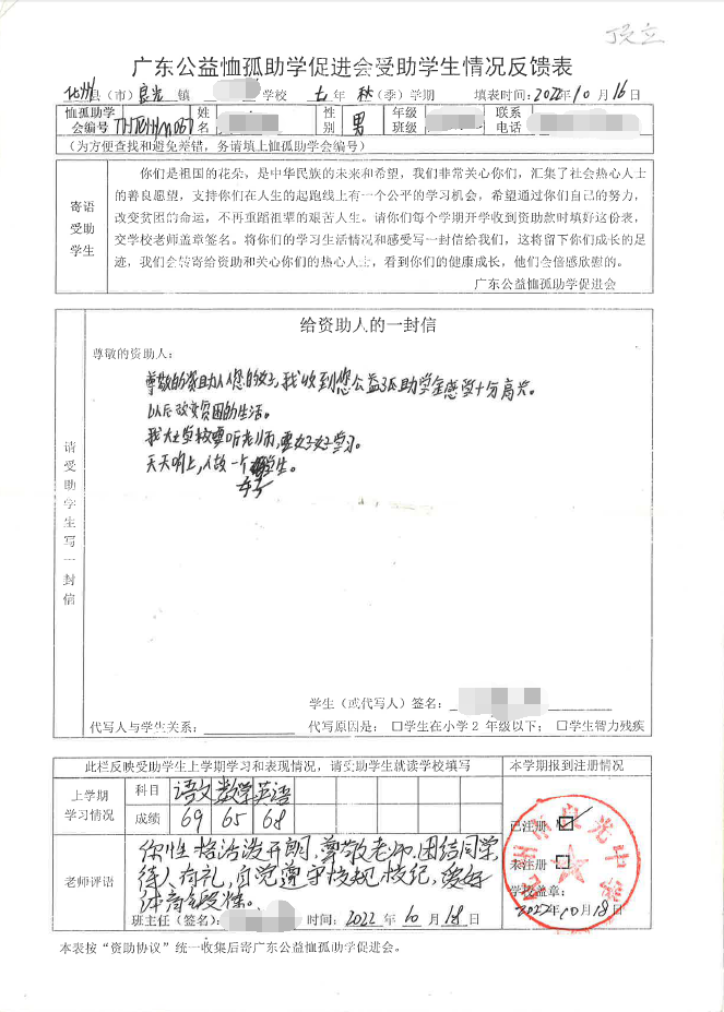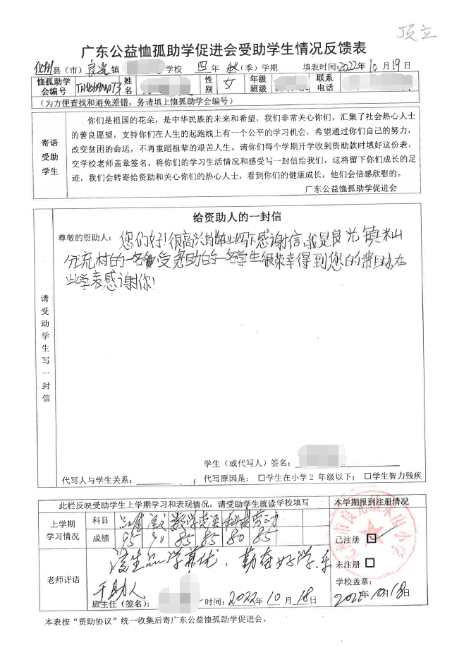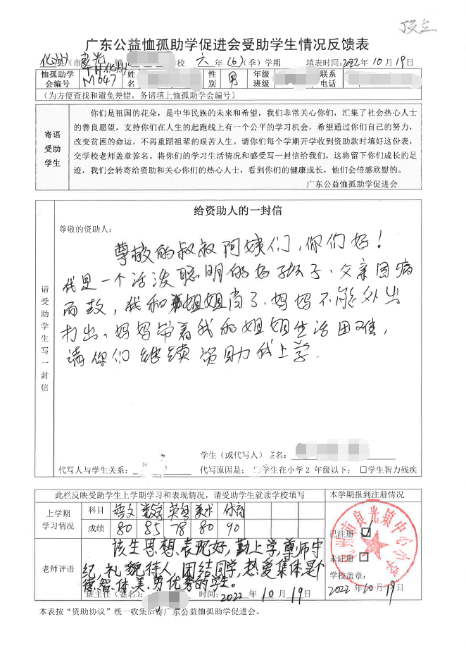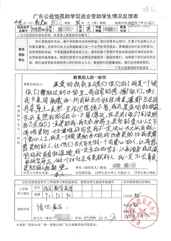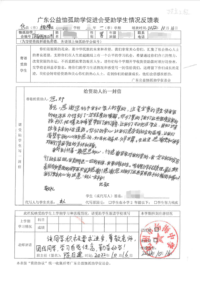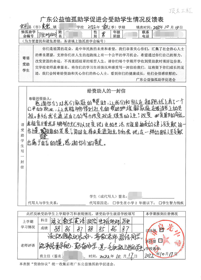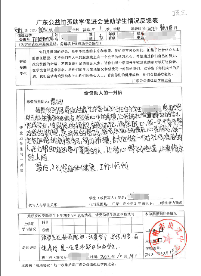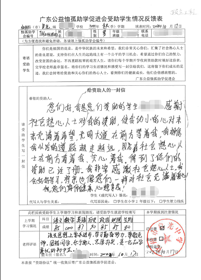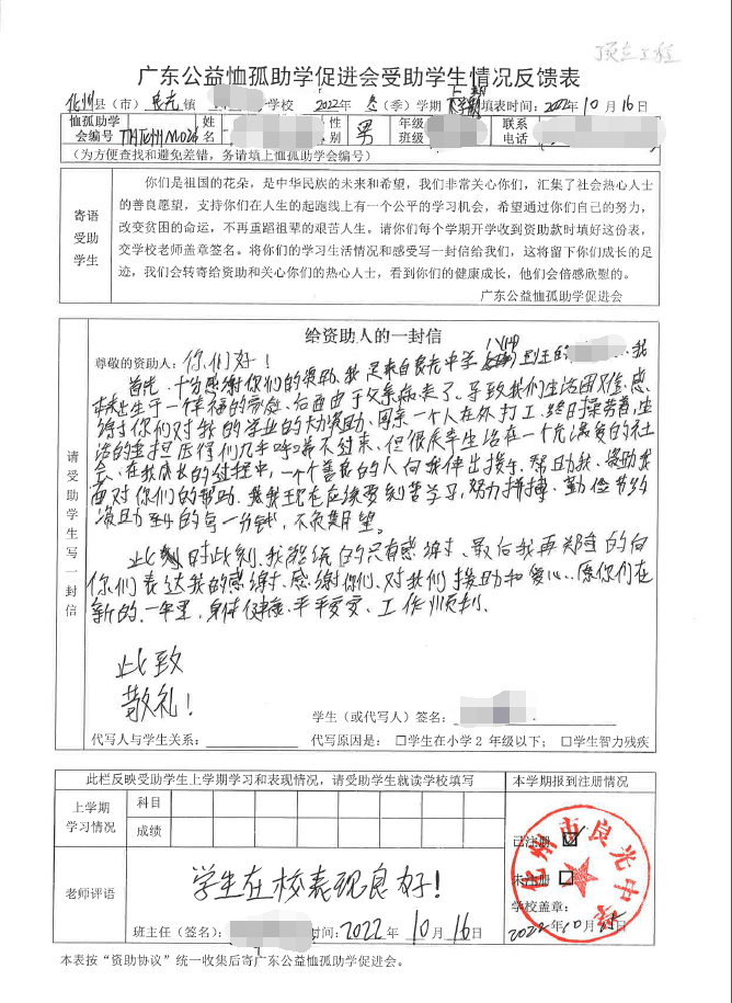 ——2022年“訪貧助學(xué)化州行”慈善助學(xué)活動(dòng)受助學(xué)生情況反饋